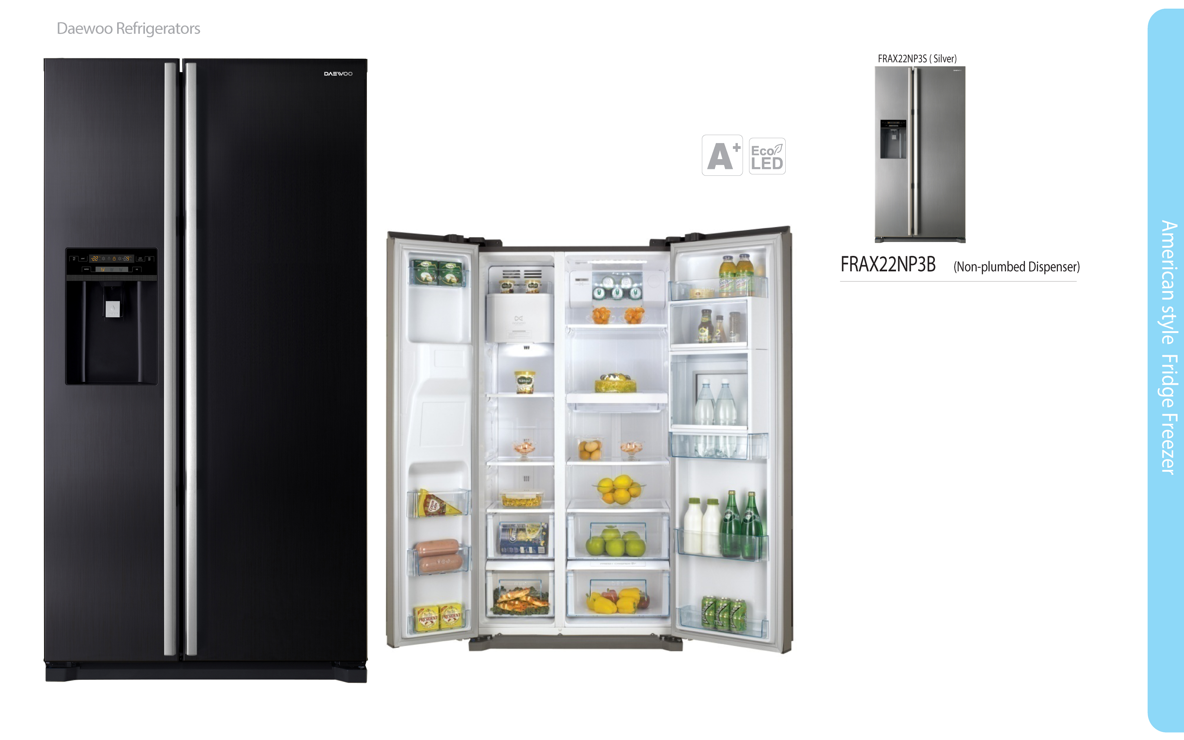 Model No. FRAX22NP3B Colour Black Energy Efficiency A+ Product Dimension (W*H*D) (mm) 906 * 1,770 * 735 Product Weight 98 kg Noise Level 41 db NET Capacity (Freezer) 179 Litre NET Capacity (Fridge) 370 Litre Packaging Dimension (W*H*D) (mm) 970 * 1840 * 767 Packed Weight 111 - Downloads